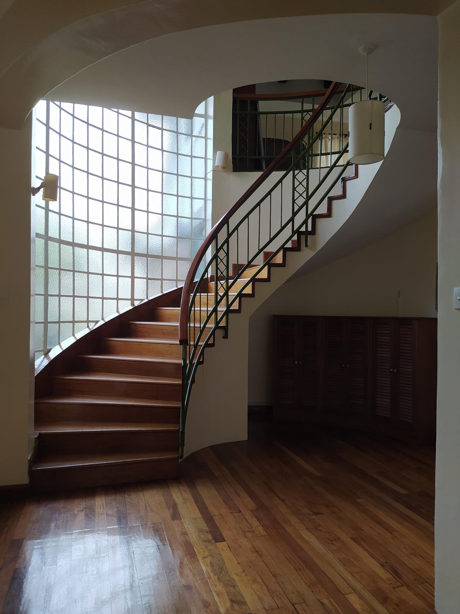 - Curved staircase from the lounge leading to the family/Tv room upstairs.