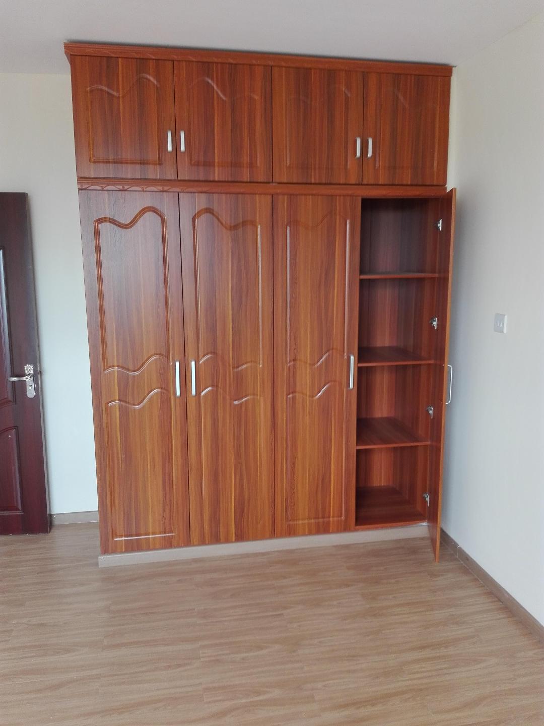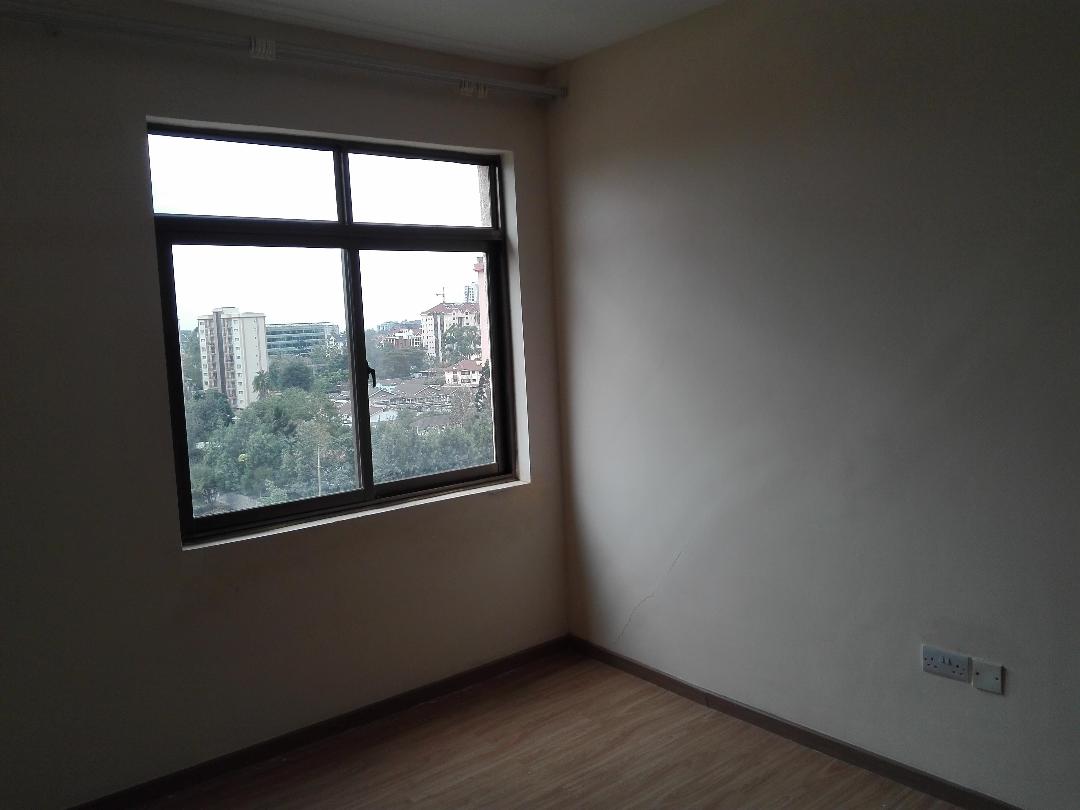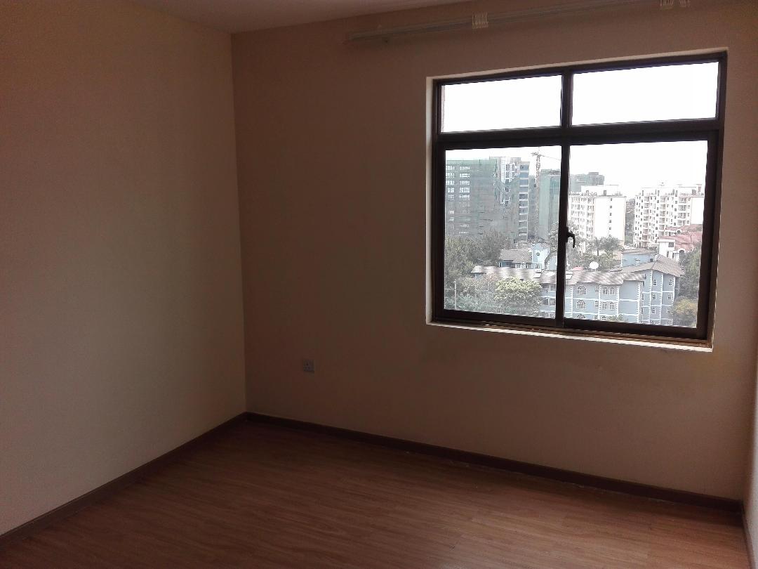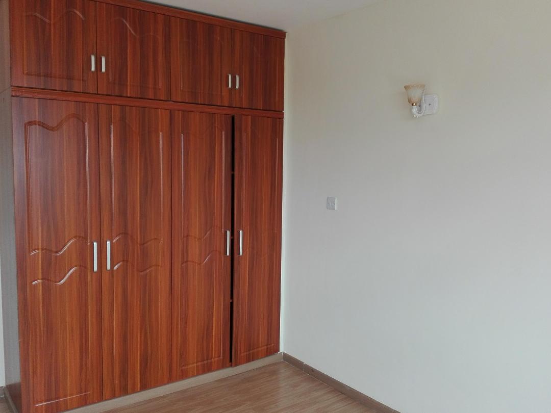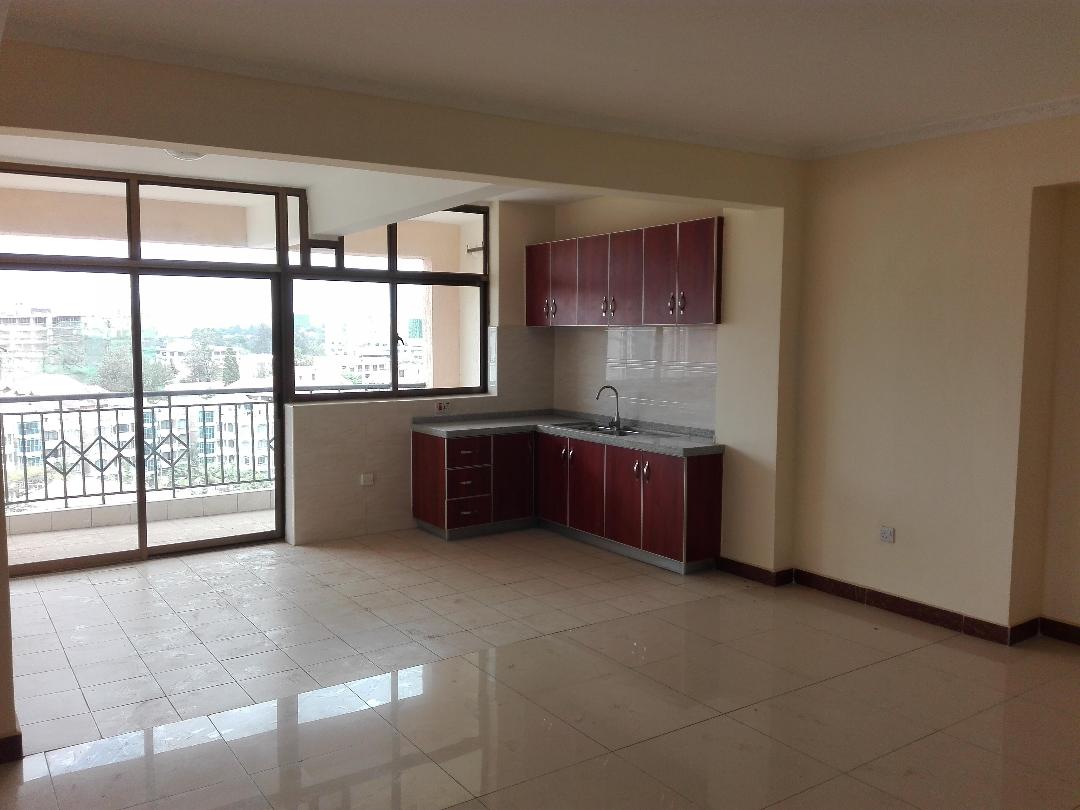 Available for sale is this 3 bedroom apartment at Kilimani located on the 6th floor of a housing complex with 2 blocks of 30 units each served by high speed lifts. The master is ensuite whereas the other two bedrooms share a bathroom. The kitchen is open plan and has floor to ceiling glass sliding doors that open to a wide balcony which also houses the laundry area. This glass doors allow lots of natural lighting into the house and offer nice views of the Kilimani area. The floors are ceramic tiles in the lounge cum dinning area and in the kitchen while the bedrooms are of wood textured laminates.